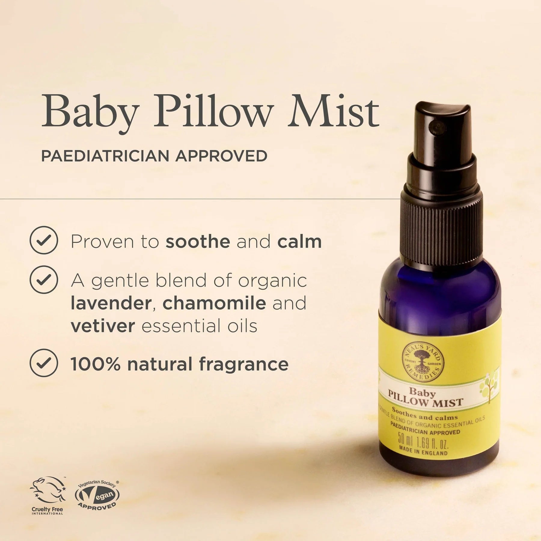 A better sleep for baby; a better sleep for you. This paediatrician-approved blend of lavender, chamomile and vetiver organic essential oils is proven to help soothe and calm your baby at bedtime. Whether sprayed onto bedding, a teddy or a blanket, the soothing scent helps to create a sense of comfort and security while at home or out in the world. Dermatologically tested to be gentle against the most sensitive and delicate skin, our Baby Pillow Mist helps to encourage quieter nights that the whole family can enjoy.