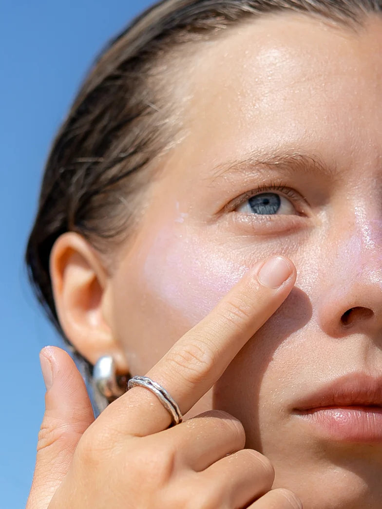 Waterless Solid Sunscreen: take a small amount with your fingers and massage it into the palm of your hand.