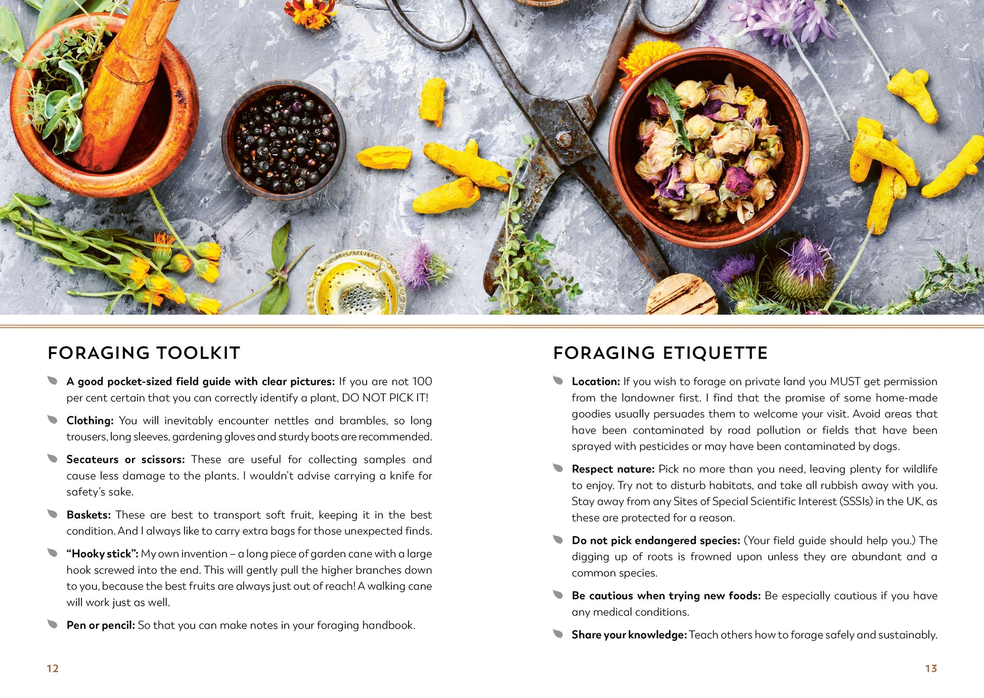 As many of us look for ways to live a more planet-friendly lifestyle, the sustainable and ethical art of foraging offers us a way to connect with the world around us. This foraging companion is designed to be taken with you on your adventures into the hedgerows, forests and woodland all year round. Helpfully arranged by season, this book includes clear photographs to aid plant identification, ideas on how best to prepare and preserve your finds, fascinating foraging and plant folklore, and handy pages to make your own notes and drawings.